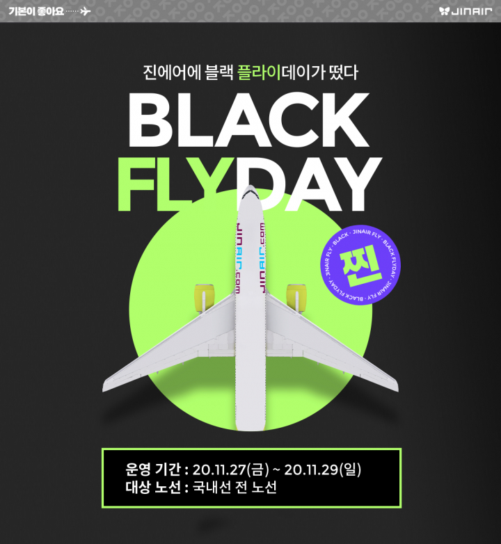 블랙 플라이데이는 진에어의 국내선 주간 정기 프로모션으로 해당 기간 최저 운임 항공권 오픈 및 운임 할인을 제공한다.