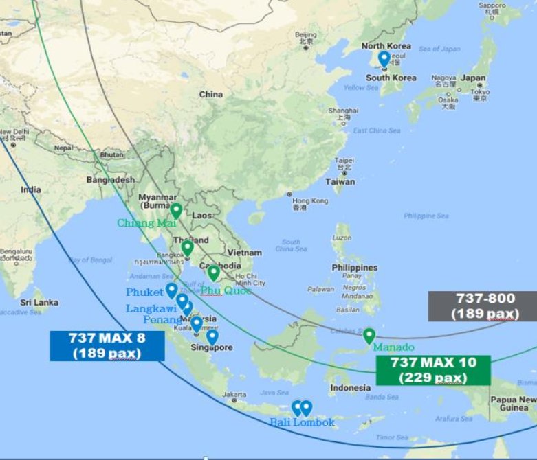 위의 이미지를 참고해 보면 승객 189명을 태우고 갈 수 있는 거리가 나와있는데, 기존의 LCC들이 운항하고 있는 기종인 B737-800 기종으로 갈 수 없는 인도, 발리, 말레이시아 랑카위 등 새로운 노선을 취항할 수 있게 되는거지.